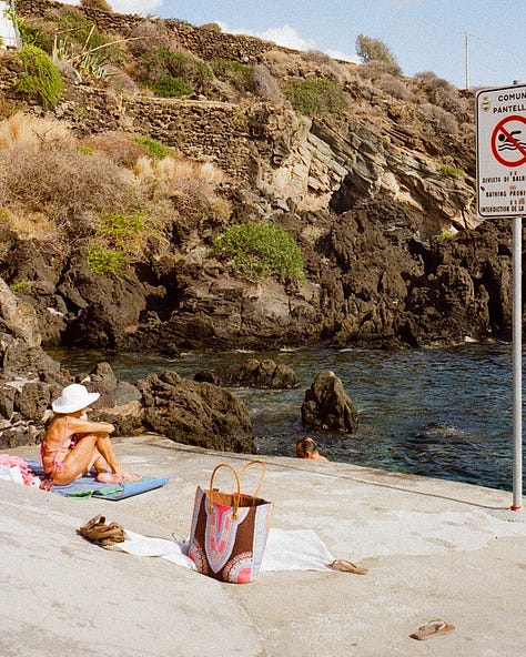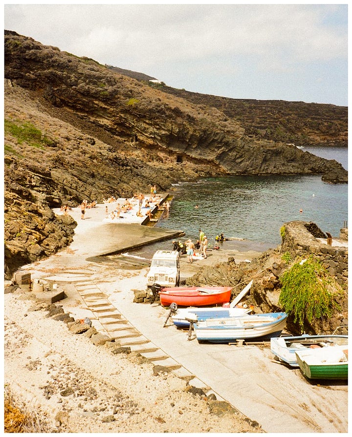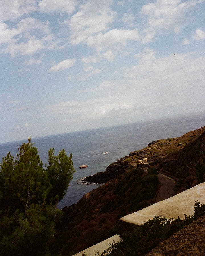 Pantelleria is a inimini tiny volcanic island between Sicily and Tunisia, known for its dramatic coastline, natural hot springs, and unique dammusi stone houses. With no sandy beaches but stunning lava rock formations and crystal-clear waters, it’s a paradise for those seeking raw, untouched beauty and a slower pace of life. Ever since i’ve read an article in Konfekt about this place and seeing the beautiful Parco dei sesi, I have been wanting to visit it.
